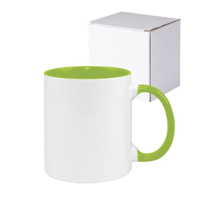Szublimációs bögre világoszöld belső fogantyúval, 11 OZ (350 ml), kiváló minőségű kerámia, ideális egyedi ajándékokhoz és személyre szabott nyomtatáshoz. Tartós és dobozban csomagolva.